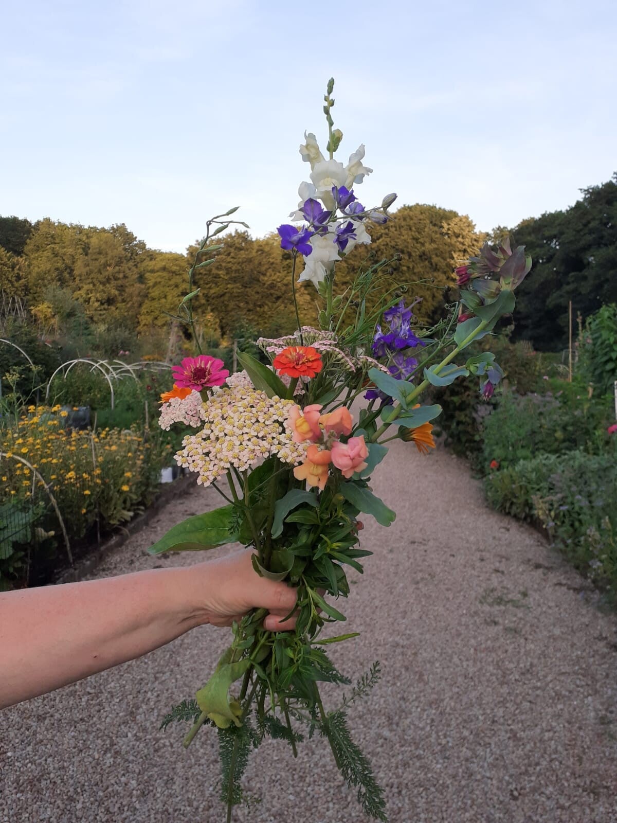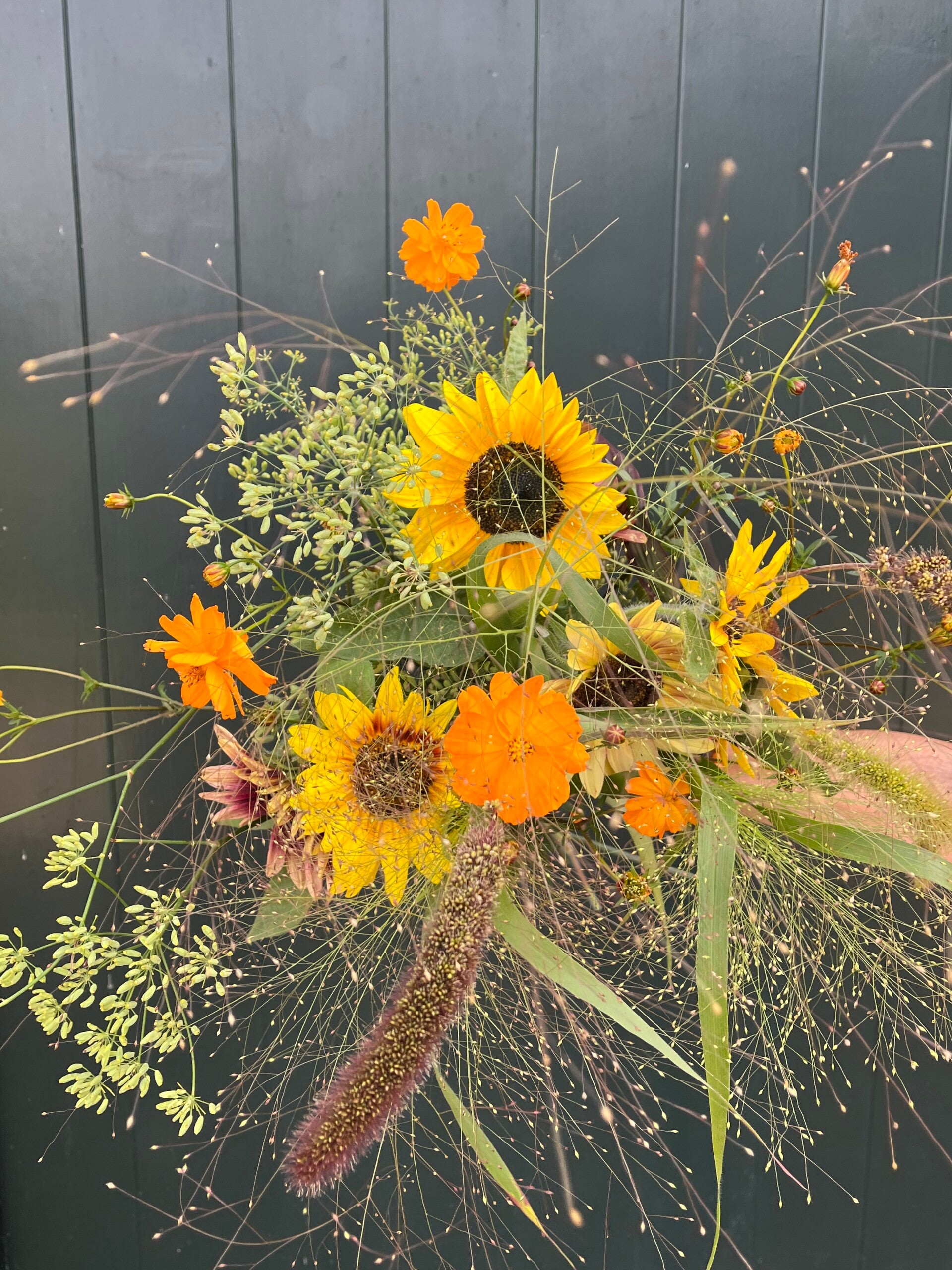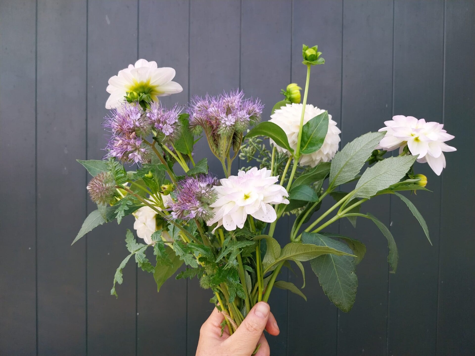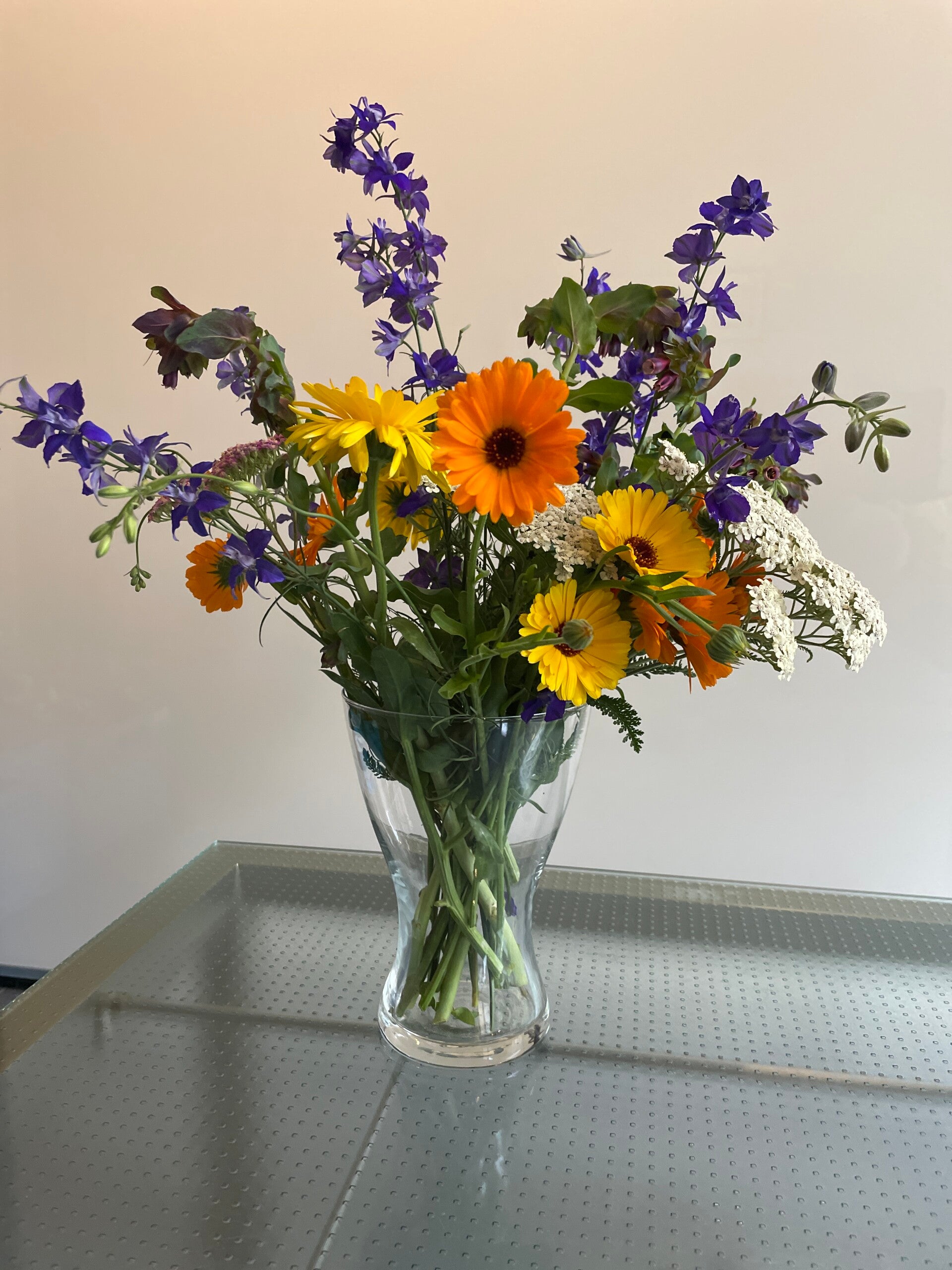 De samenstelling van onze boeketten verandert met het bloemenseizoen mee. In het voorjaar hebben de boeketten frisse, heldere kleuren zoals roze en blauw, met o.a. goudsbloemen, riddersporen en korenbloemen. In de zomer vind je in onze boeketten dahlia’s in mooie zachte zomertinten, aangevuld met schermbloemen, grassen en zinnia’s. In het najaar verschuiven de boeketten naar warme herfstkleuren zoals geel en oranje. Geen boeket is hetzelfde.